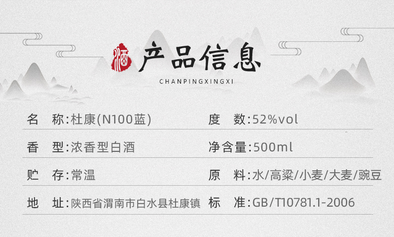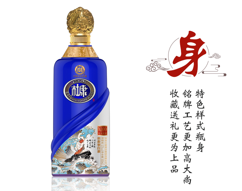 9.杜康 年份窖龄N100,商城价199.00,白水杜康52度年份窖龄N100蓝杜康白酒浓香型粮食酒水送礼盒装整箱 六瓶整箱装