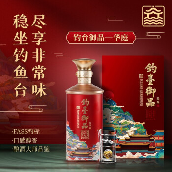 1136.钓台御品-华庭,商城价2599.00,钓台御品华庭酒酱香型53度白酒 500ml 6瓶箱