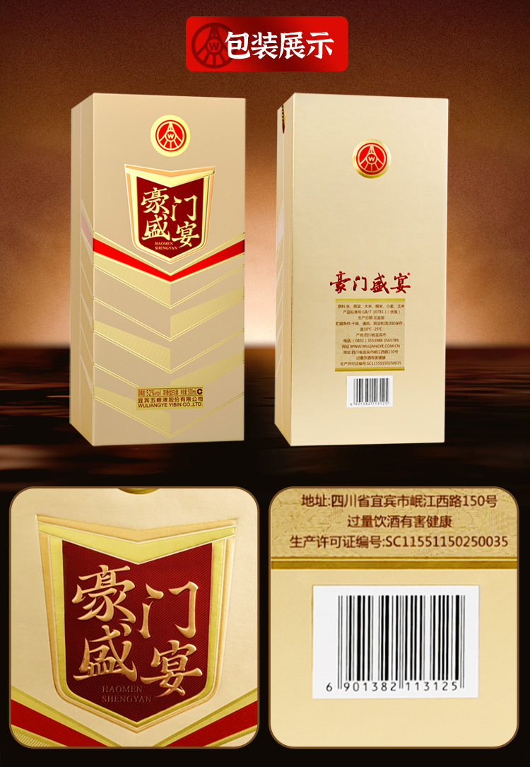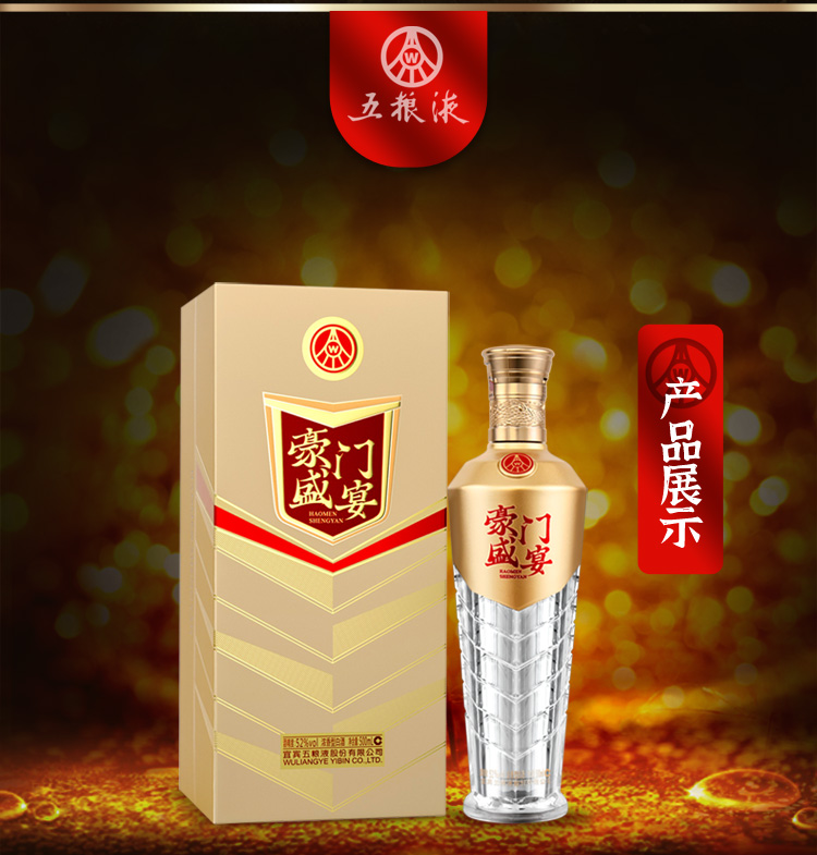 15.五粮液 豪门盛宴(品宴)整箱装,商城价668.00,五粮液股份 豪门盛宴 浓香型白酒 礼盒装 52度500ml6整箱装 高度纯粮食酒水