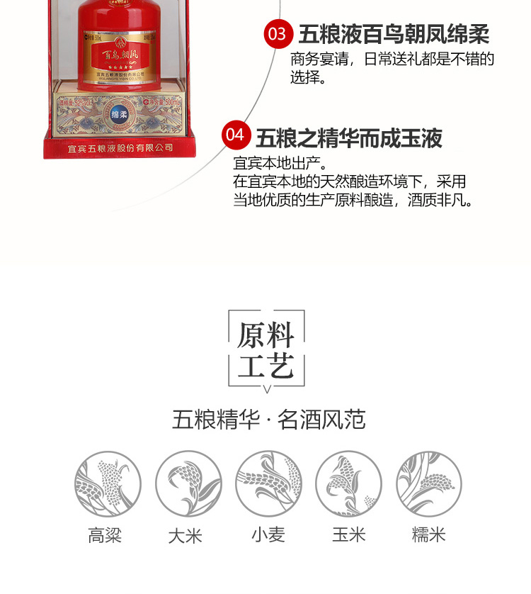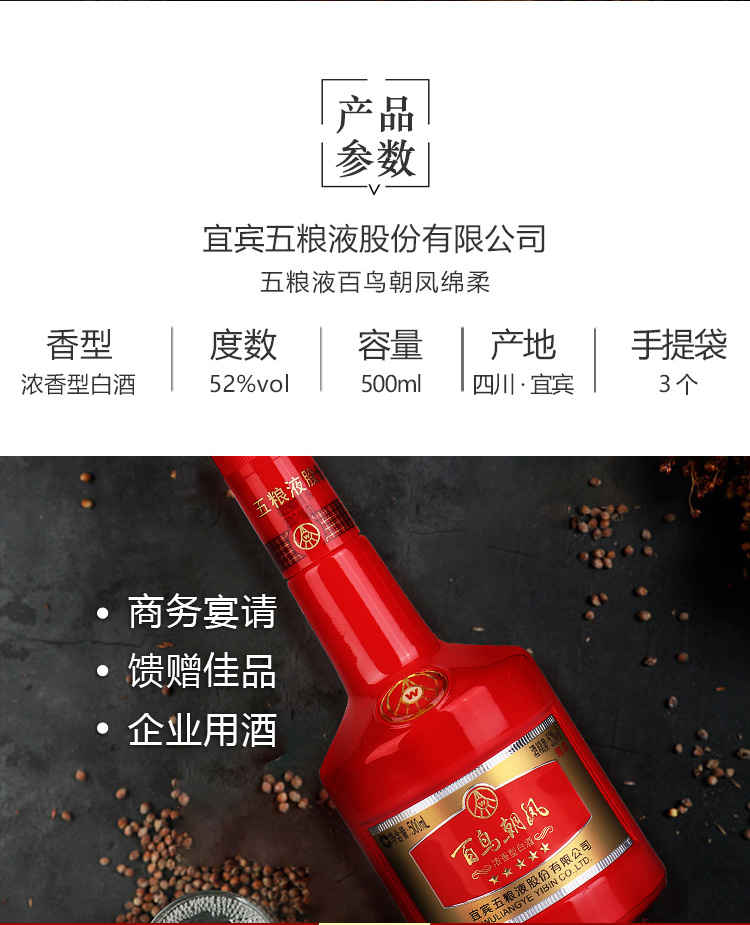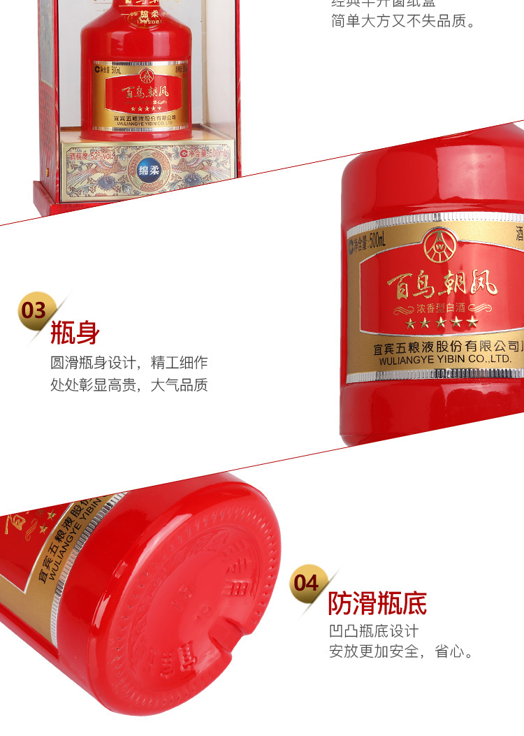 1304.五粮液 百鸟朝凤绵柔,商城价489.00,五粮液百鸟朝凤绵柔 52度 500ml6瓶 整箱装