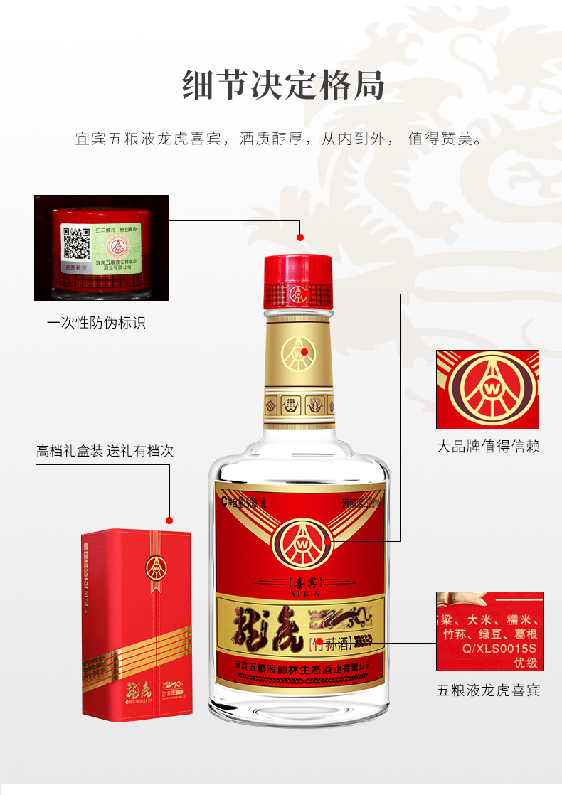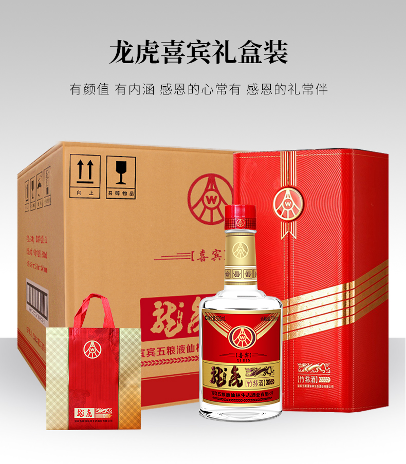 1393.五粮液 龙虎喜宾,商城价454.00,五粮液生态酿酒龙虎喜宾500mlX6瓶52度高度白酒整箱装婚宴酒 500ml6瓶