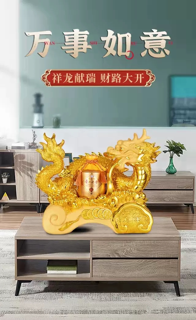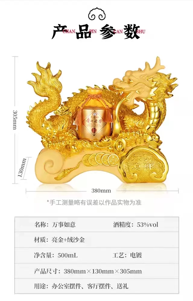 1525.茅台集团工艺品万事如意,商城价534.00,茅台集团工艺品万事如意53度500ml1瓶酱香型白酒收藏摆柜 纯粮