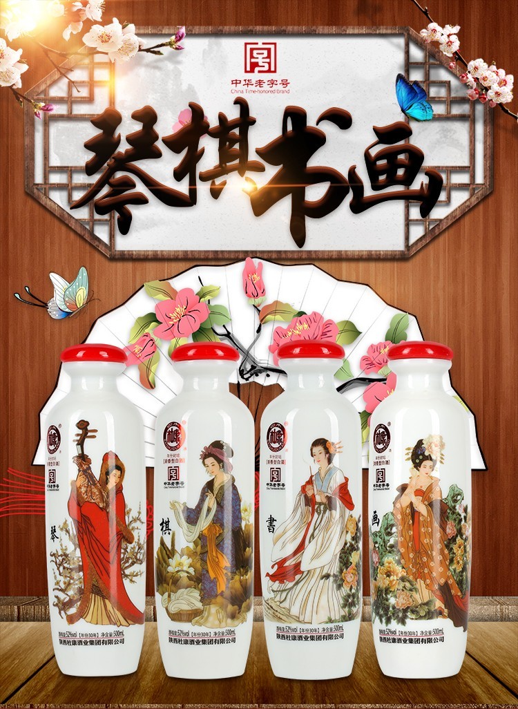 65.杜康 琴棋书画,商城价118.00,白水杜康 52度 浓香型白酒 礼盒粮食酒水 琴棋书画高档礼盒 500ml4 瓶
