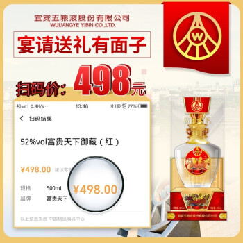 1604.富贵天下御藏红,商城价442.00,EQ 五粮液富贵天下御藏红 五粮液股份有限公司出品 52度浓香型白酒 礼盒装 500ml6瓶整箱装