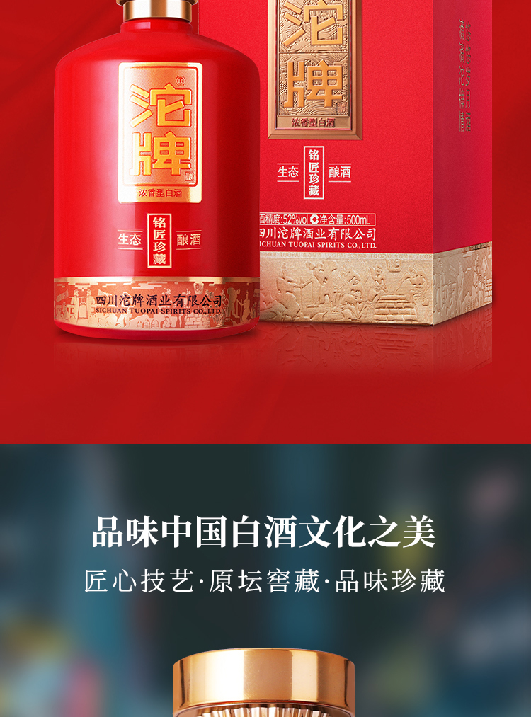 1620.52度沱牌铭匠珍藏,商城价358.00,沱牌舍得 沱牌铭匠·珍藏 52度浓香型白酒 500ml6整箱