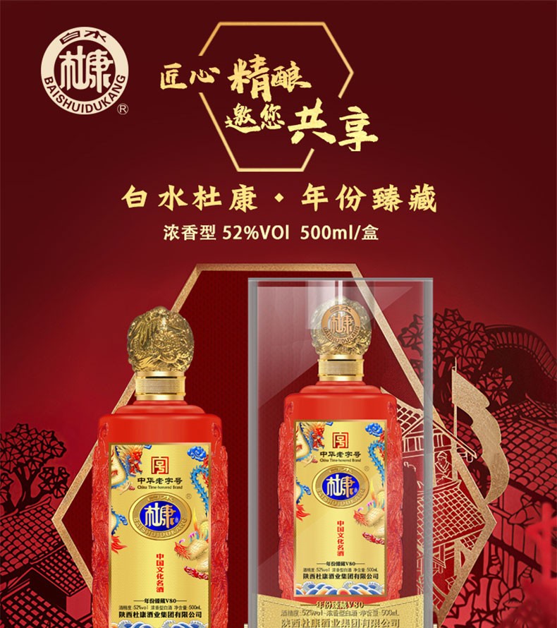 71.杜康年份臻藏V80,商城价178.00,杜康酒 白水杜康年份臻藏V80红整箱浓香型白酒52度高度送礼婚宴寿宴酒 白水杜康年份臻藏V80整箱
