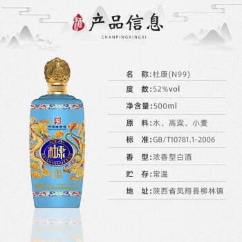 73.杜康年份窖龄N99,商城价178.00,白水杜康 52度浓香型高度白酒 纯粮食酒 年份窖龄N99 500mL6瓶