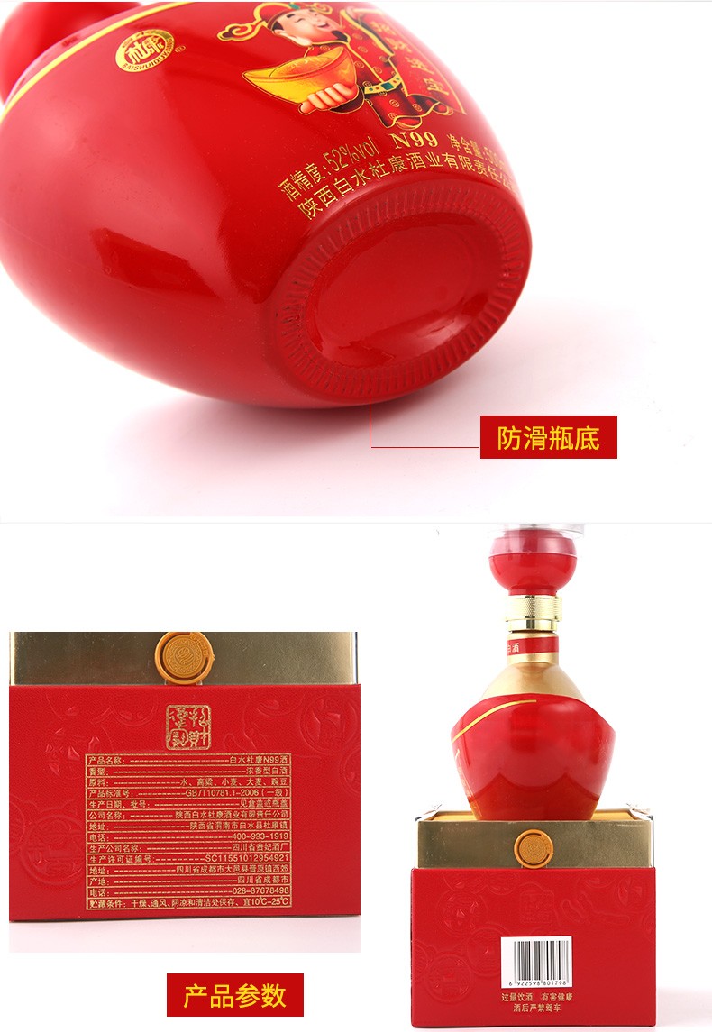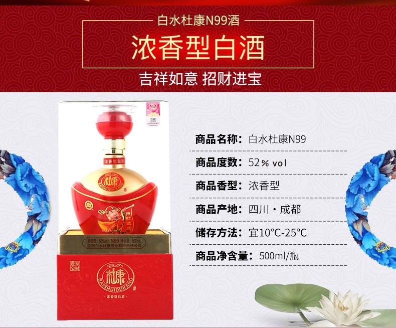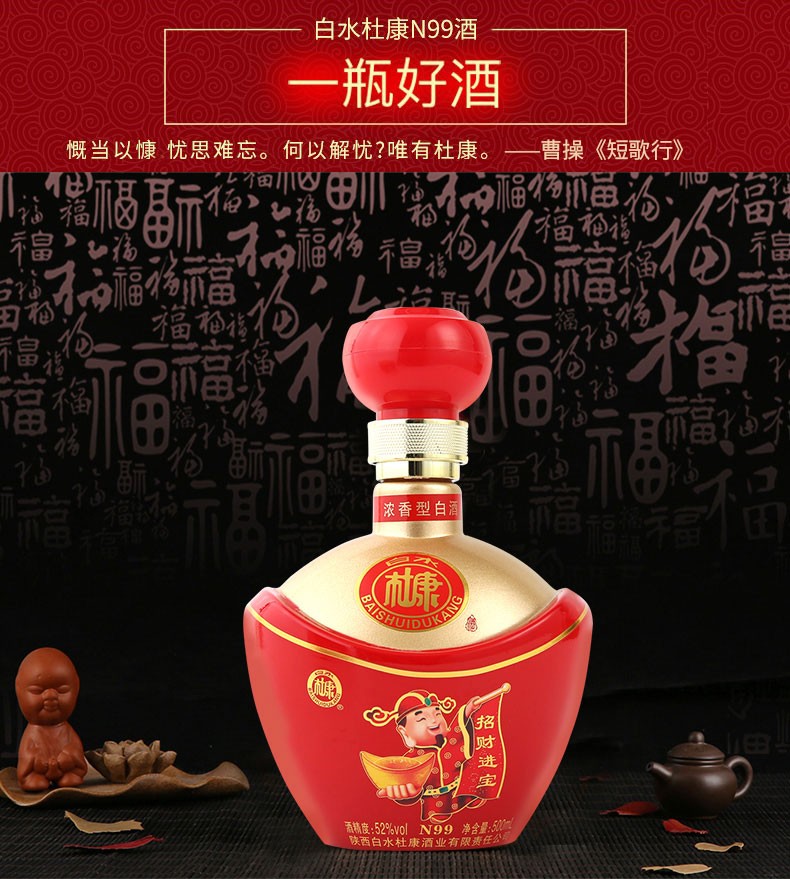 1771.白水杜康 N99 整箱装,商城价199.00,FJL 白水杜康酒 自饮白酒整箱 52度浓香型白酒礼盒 招财进宝 N99 500ml6瓶 整箱装