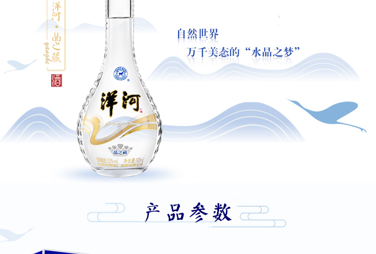 1843.洋河 晶之藏 整箱装,商城价339.00,FJL 洋河 晶之藏 蓝色经典卡盒 口感绵柔型高度白酒 52度 500ml6瓶 整箱装