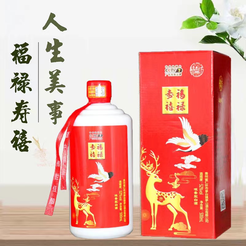 1857.茅台镇 福禄寿喜,商城价90.00,FJL 贵州福禄寿喜酒500ml6瓶整箱特价批发高度纯粮食原浆酒水