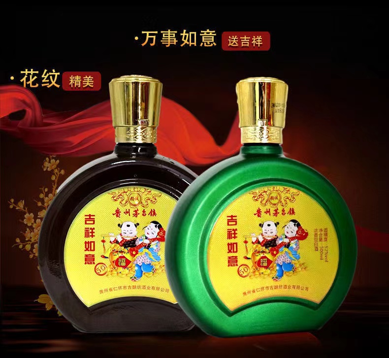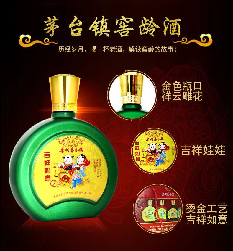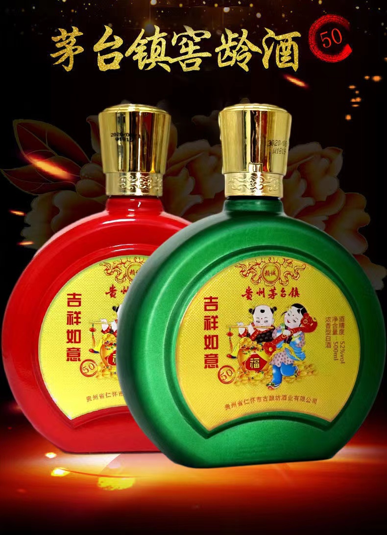 1859.茅台镇 吉祥如意,商城价94.00,FJL 茅台镇窖龄酒吉祥如意52度浓香型白酒500ml4瓶箱装贵州纯粮酿造