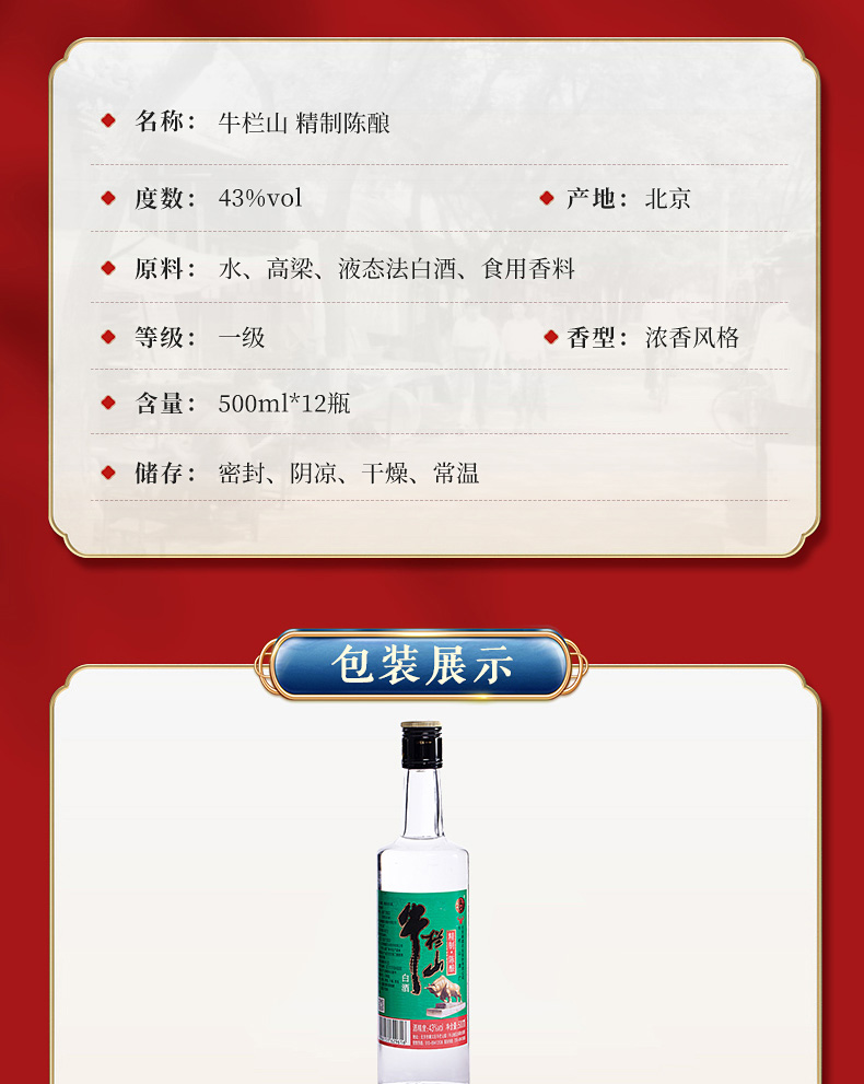 1895.牛栏山 精制陈酿,商城价246.00,MY 牛栏山二锅头 43度 精制陈酿系列白酒(牛栏山白瓶升级版)年货送礼 500ml整箱(12瓶)