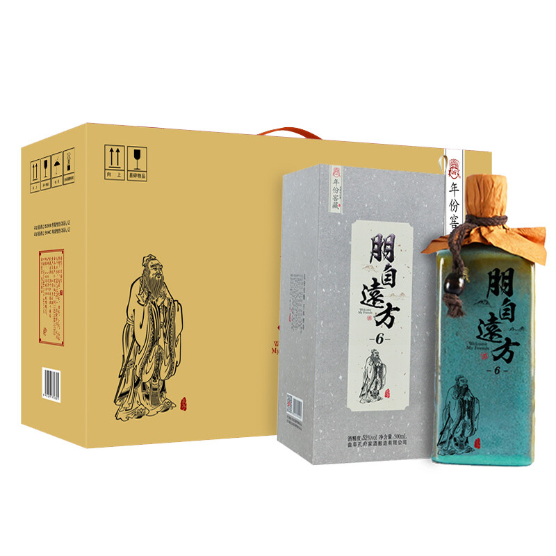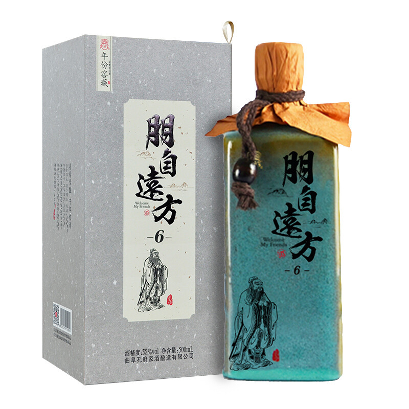 1896.孔府家 朋自远方6尊享版,商城价1069.00,MY 孔府家酒 52度浓香型山东白酒 朋自远方6 500ml4瓶 整箱装