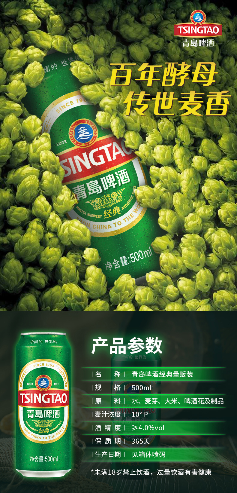 1919.青岛听啤 500ml,商城价68.00,青岛啤酒 经典500ml12听 啤酒整箱