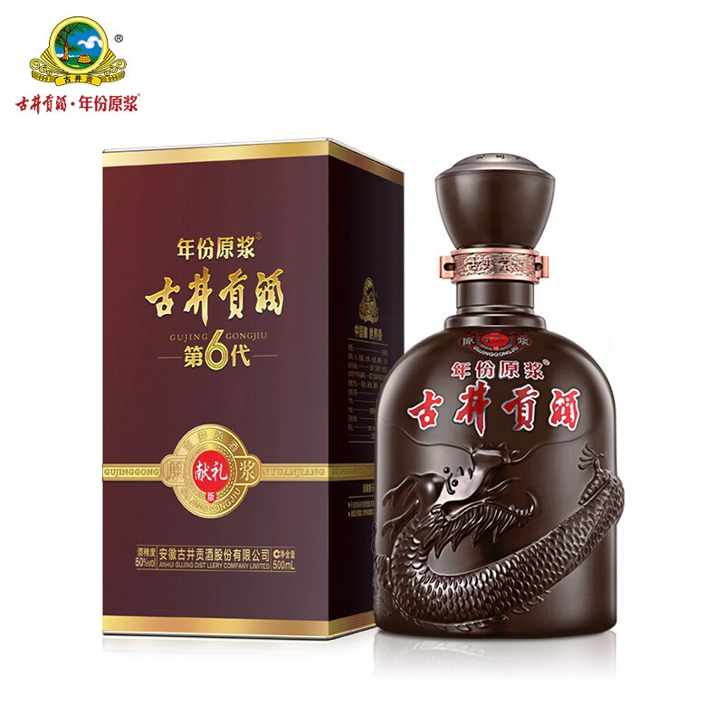 1936.古井贡 年份原浆献礼版 500ml,商城价129.00,MY 古井贡年份原浆献礼版 50度500ml瓶浓香型白酒整箱装 高度酒