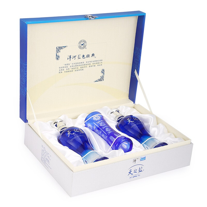 1962.天之蓝 52° 480ml 礼盒装,商城价699.00,MY 洋河蓝色经典 天之蓝 52度 礼盒装 480ml2瓶高度白酒 口感绵柔浓香型