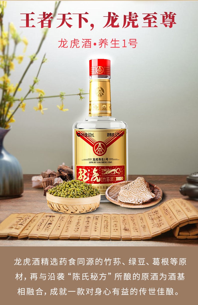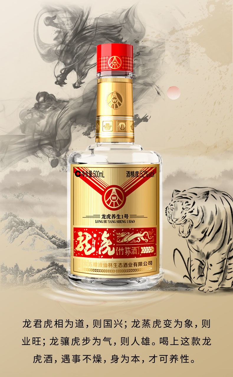 107.五粮液 龙虎养生1号,商城价228.00,五粮液股份公司出品 龙虎竹荪酒 养生酒礼盒 52度 500ml2瓶 双瓶装