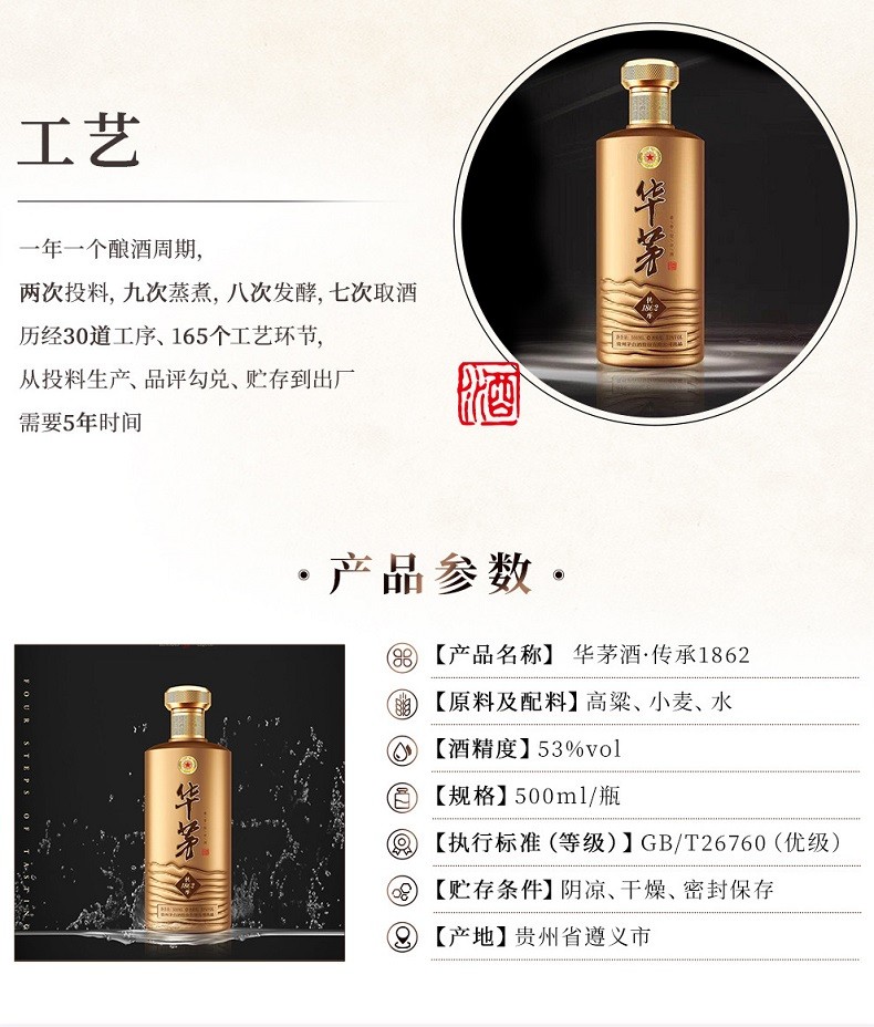2079.华茅 1862传承 单瓶装,商城价1399.00,MY 贵州茅台股份公司 华茅酒传承1862 酱香型白酒 53度 礼盒酒水 500ml 整箱装