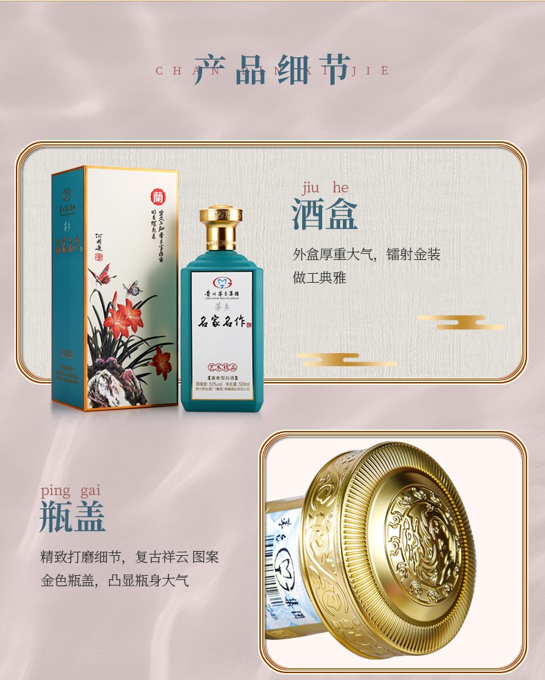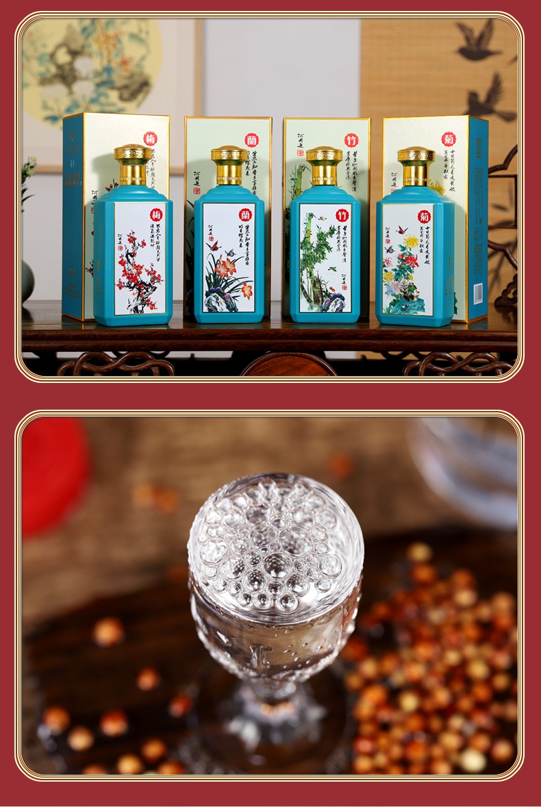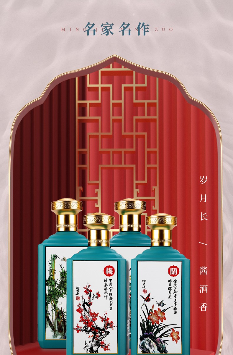 2095.名家名作梅兰竹菊,商城价1066.00,LY 贵州茅台集团名家名作酒 梅蘭竹菊收藏 53度酱香型粮食白酒 500ml 4瓶 整箱装