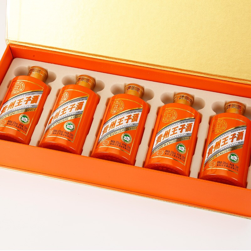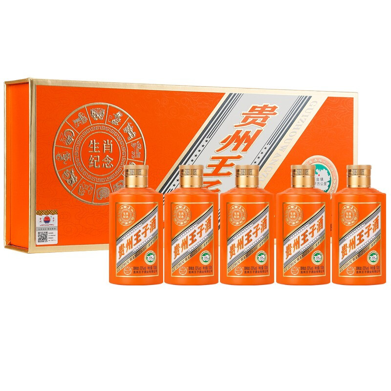 2098.茅台镇 贵州王子酒 礼盒装,商城价99.00,茅台镇 贵州王子酒 53度 酱香型白酒 高端礼盒装 生肖纪念版 100ml5瓶