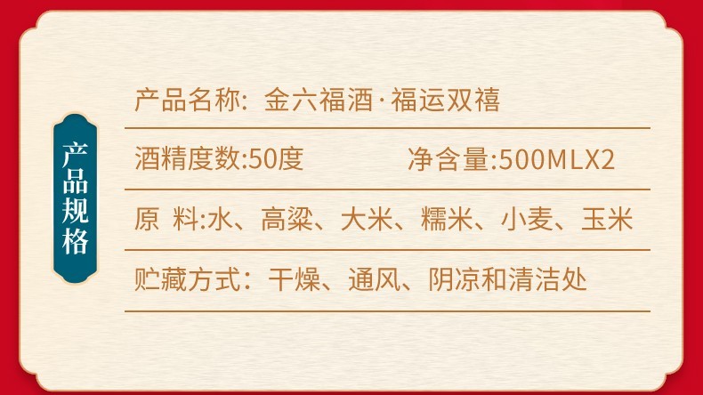 126.金六福 福运双禧,商城价119.00,金六福福运双禧50度浓香型纯粮食酒500ml2瓶白酒礼盒团购福利婚庆
