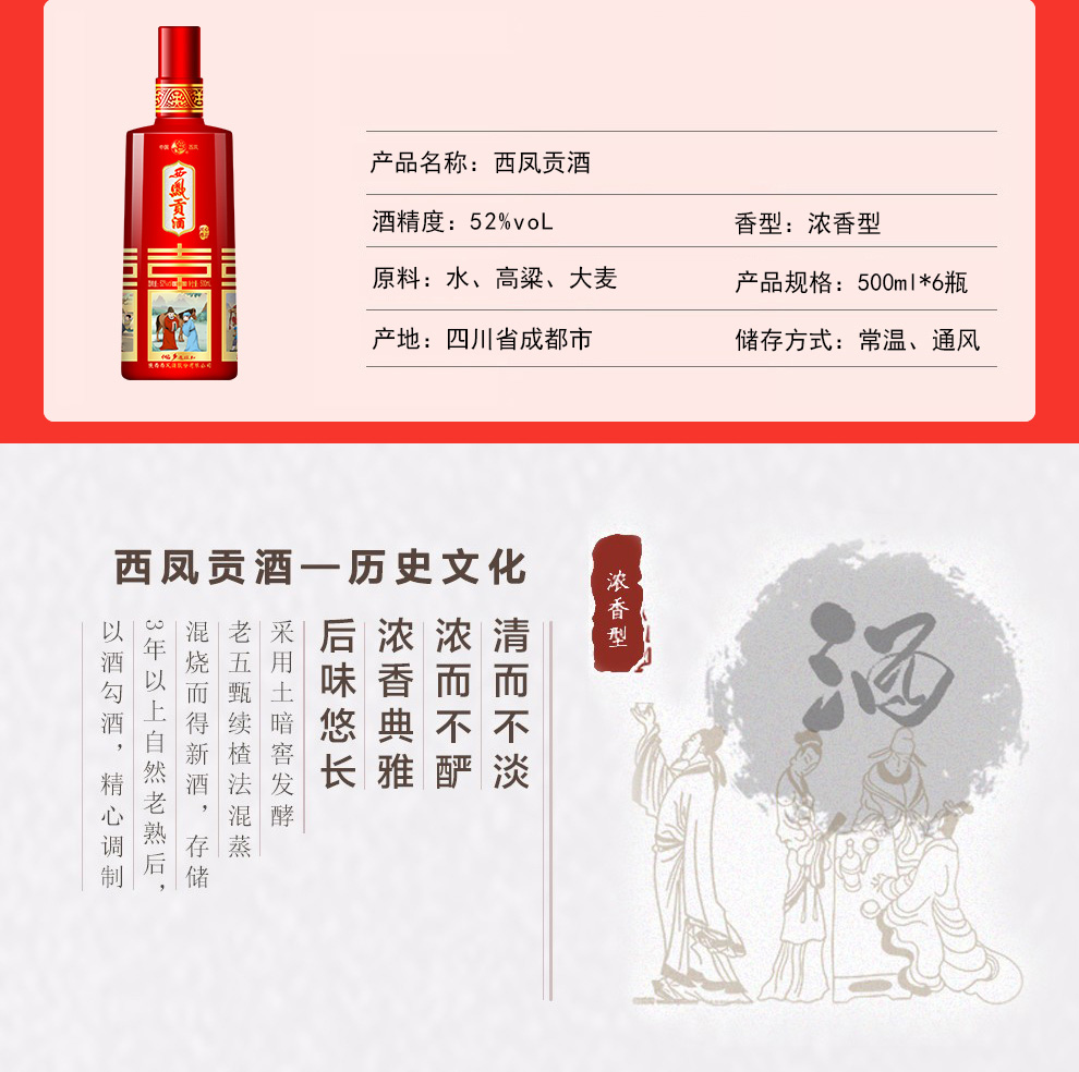 145.西凤贡酒-匠心尊品,商城价338.00,52度西凤贡酒 家有四喜 历史文化 浓香型白酒 节庆送礼 500ml6瓶礼盒装整箱装 白酒