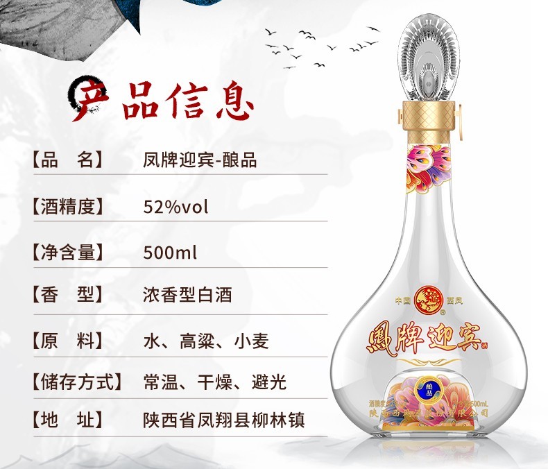 155.凤牌迎宾(酿品),商城价328.00,西凤酒 浓香型高度白酒粮食酒高粱酒自饮迎宾喜酒送礼白酒礼盒整箱装 52度 凤牌迎宾 酿品500ml6整箱