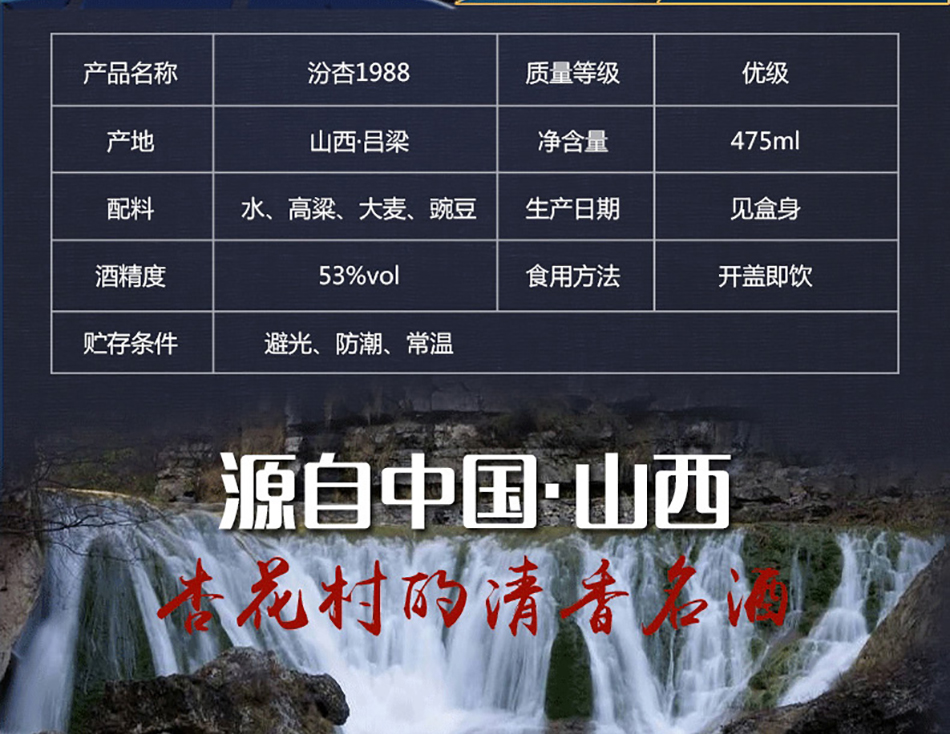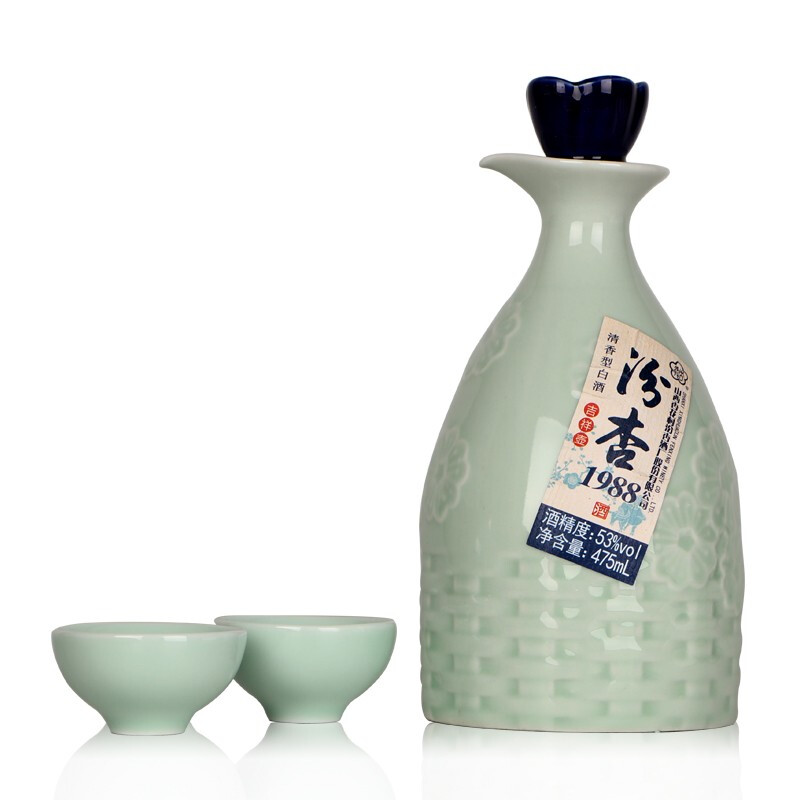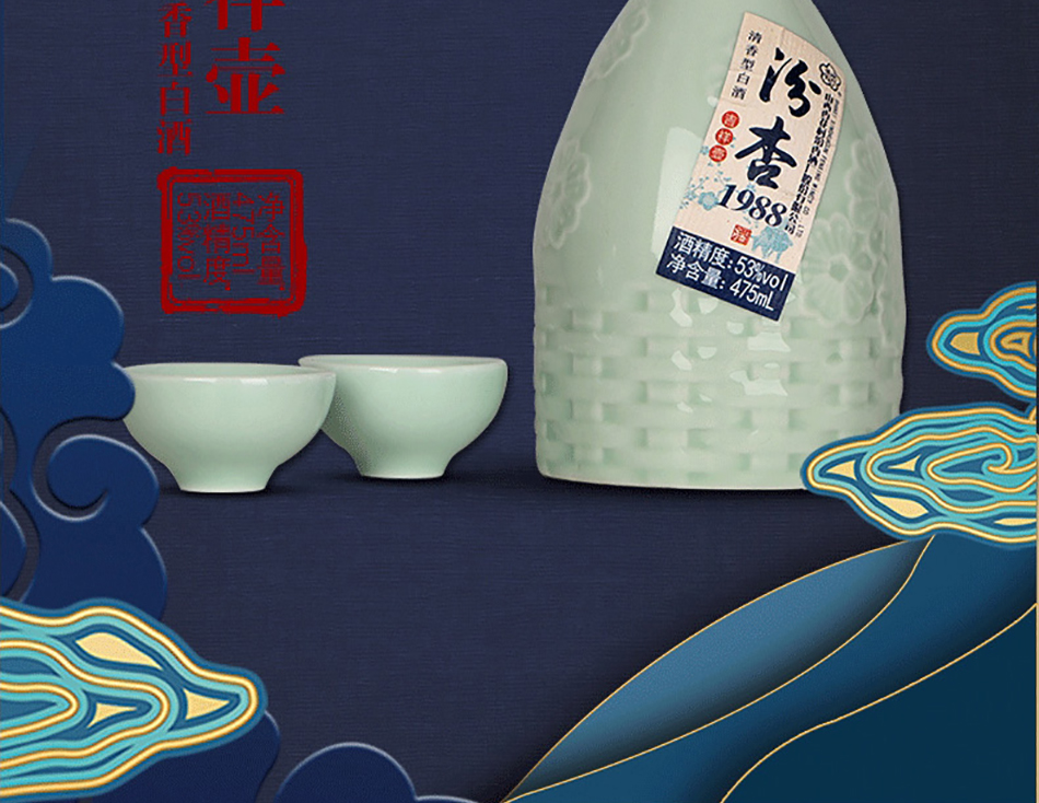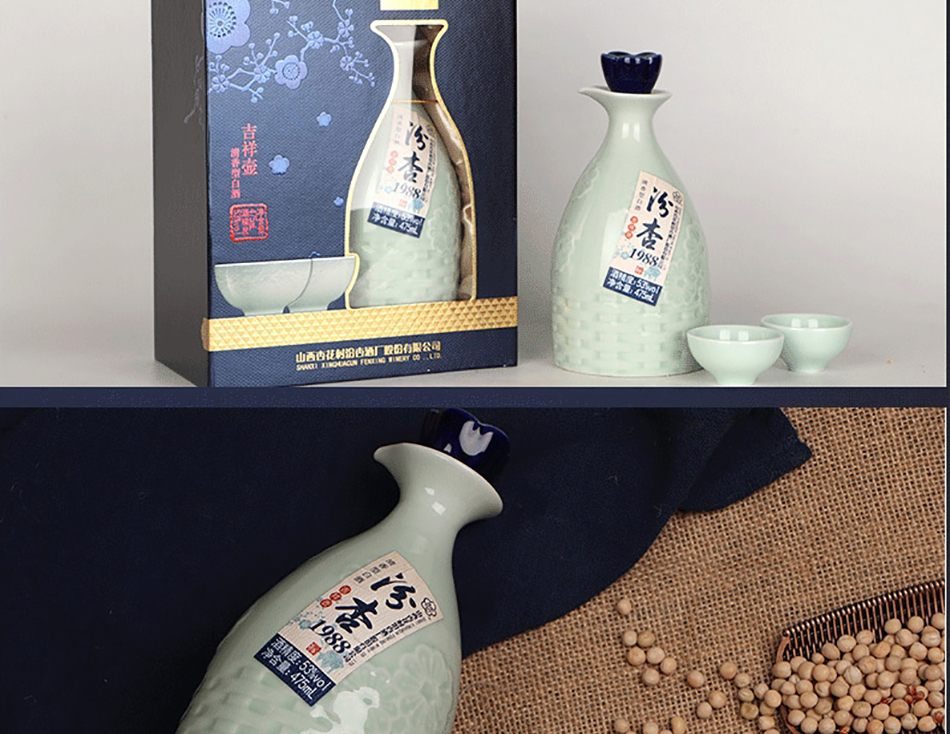 179.汾杏1988 吉祥壶,商城价368.00,山西杏花村白酒 汾杏1988吉祥壶 53度清香型白酒礼盒装 475ml6瓶礼盒装