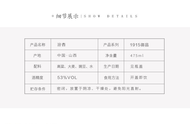 224.汾杏 1915御品,商城价299.00,山西杏花 汾杏股份 53度清香型白酒 1915系列 纯粮酿造优级高粱原浆酒475ml6瓶高档礼盒装 汾杏1915御品 整箱6瓶
