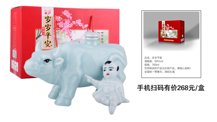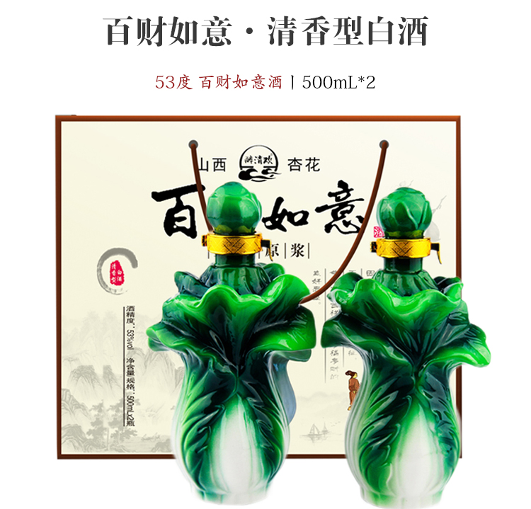 257.杏花集团百财如意,商城价114.00,杏花集团百财如意礼盒白酒(景德镇陶瓷)500ml2