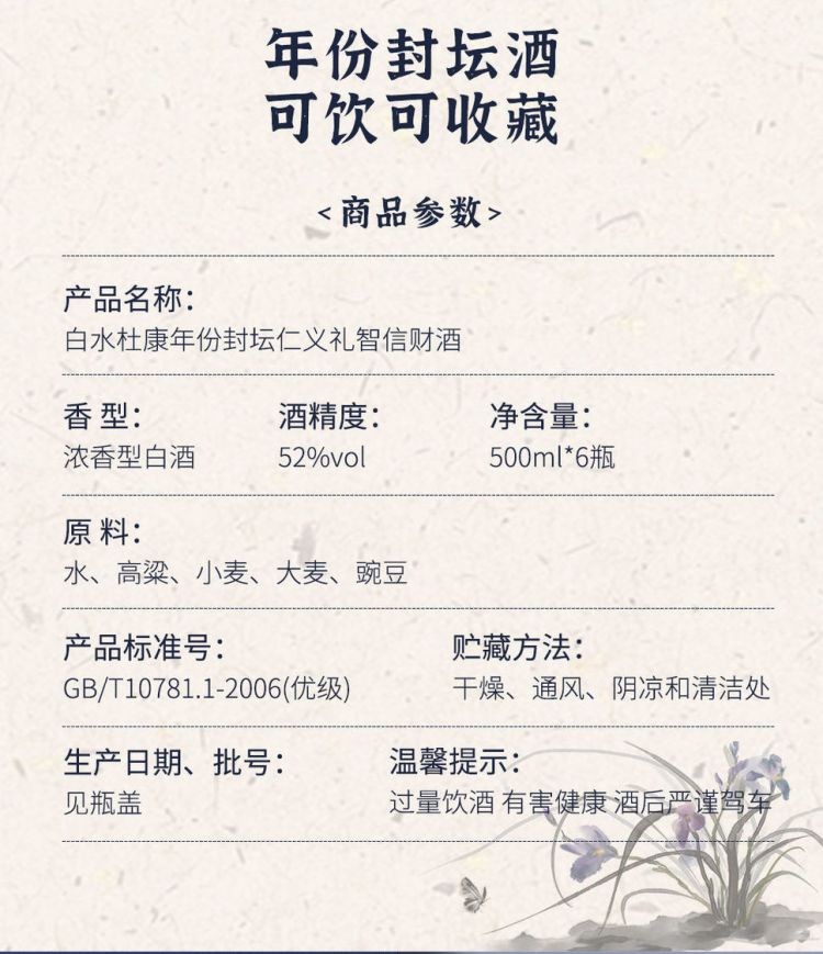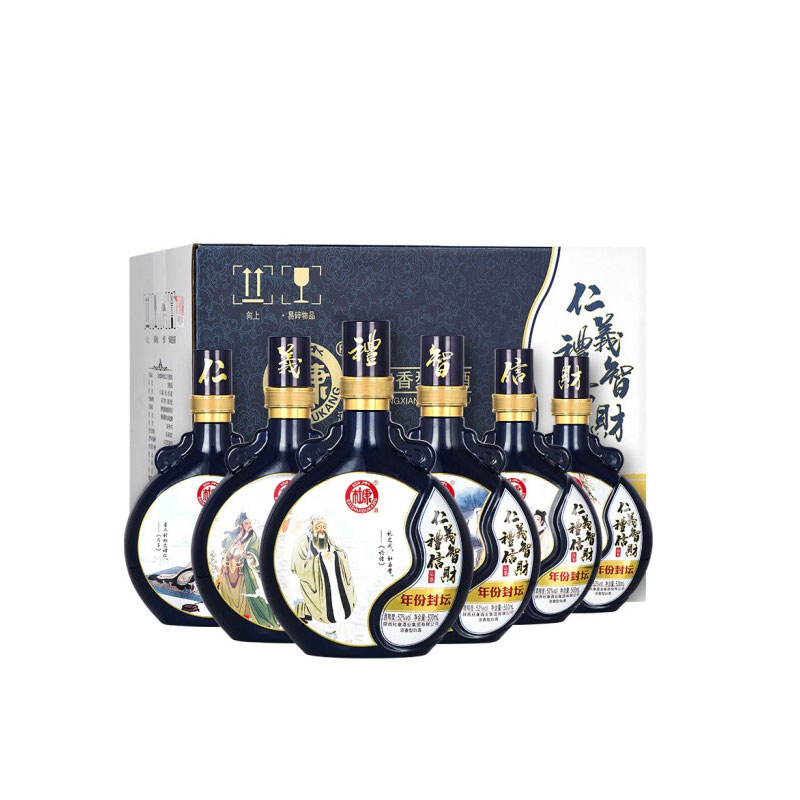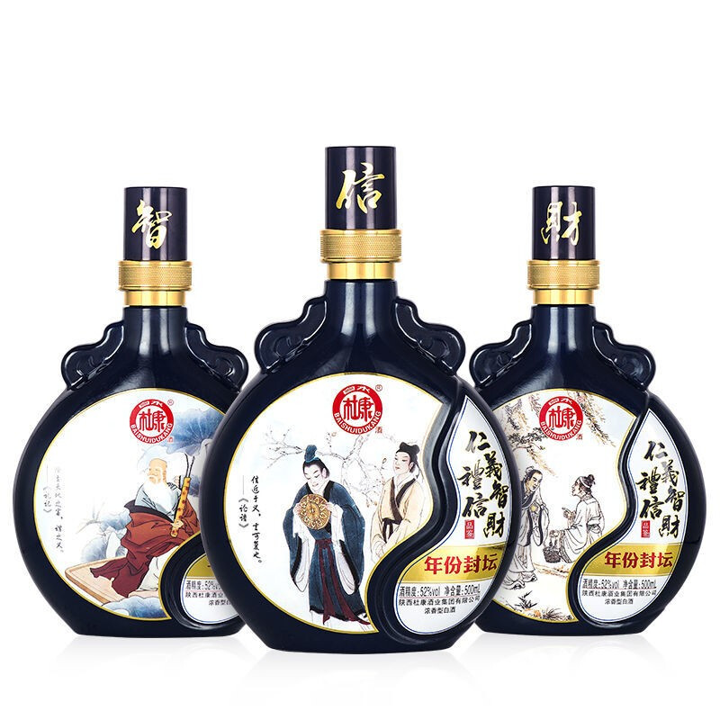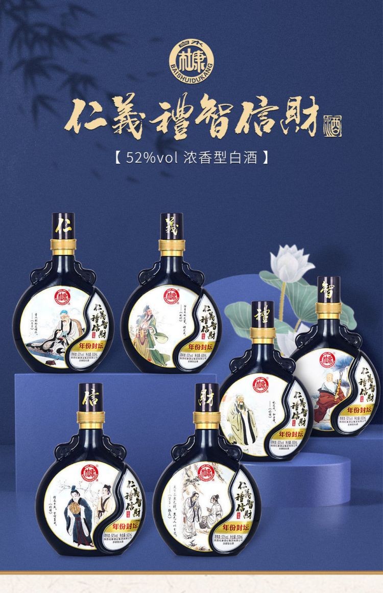 417.杜康 仁义礼智信财,商城价288.00,白水杜康 仁义礼智信财 52度浓香型白酒 500ml6(整箱装)
