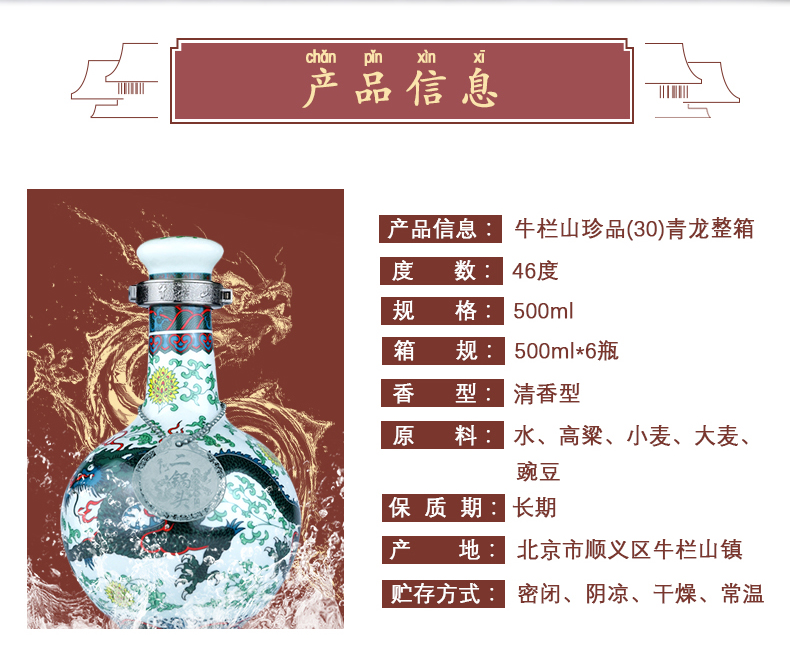 449.牛栏山珍品三十年 46度(青龙),商城价258.00,牛栏山二锅头 清香型白酒 46度珍品三十年30(青龙)500ml单瓶装