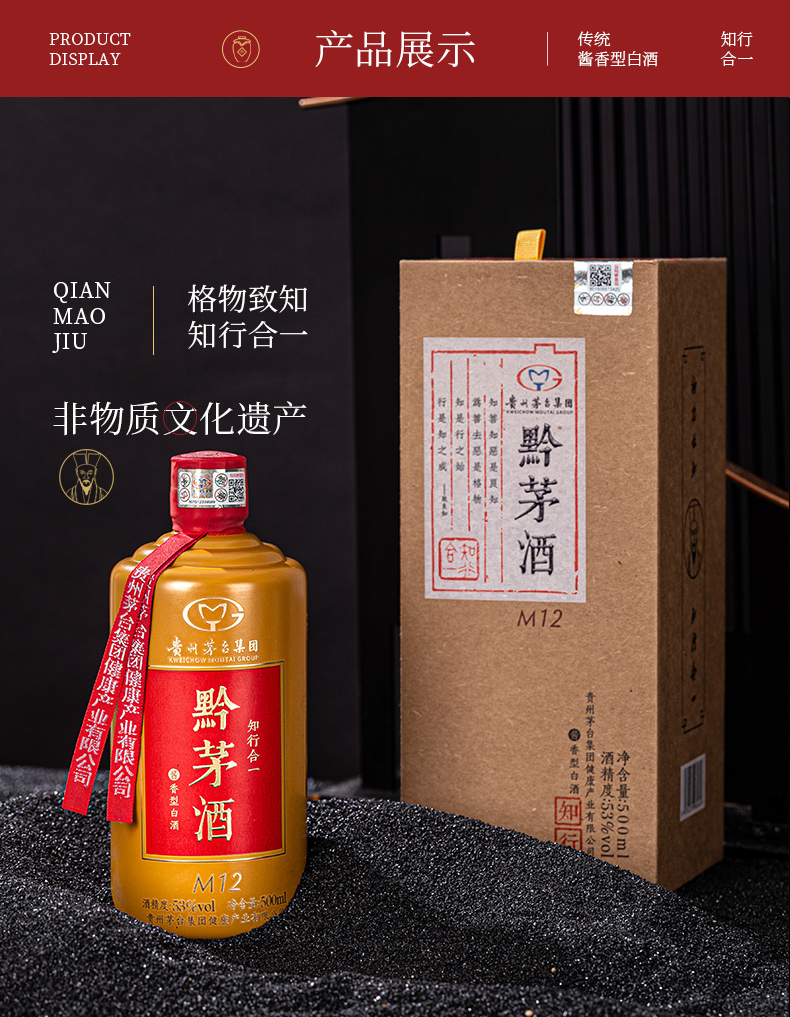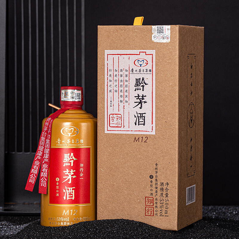 689.黔茅酒M12(知行),商城价599.00,贵州茅台集团 黔茅 M12(知行) 53度酱香型白酒 500ml 单瓶
