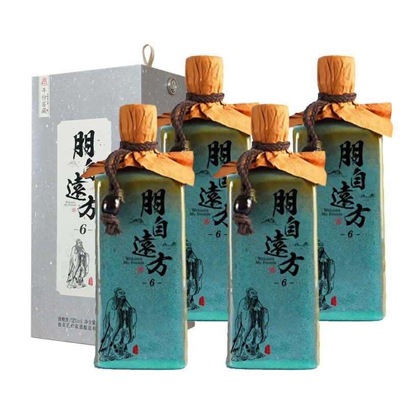 1896.孔府家 朋自远方6尊享版,商城价1069.00,MY 孔府家酒 52度浓香型山东白酒 朋自远方6 500ml4瓶 整箱装